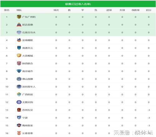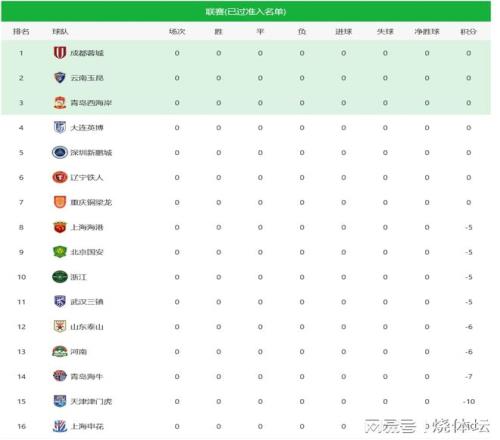 中超积分榜:申花津门虎10分垫底,长春亚泰中甲4分垫底