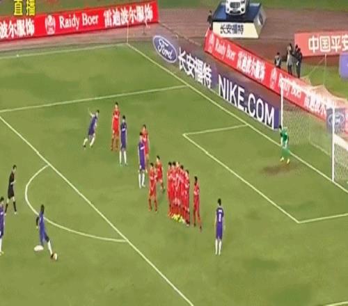 2016年最后一轮,重庆力帆对阵天津泰达,后者必须取胜才能成功保级。迪亚涅主罚任意球右脚劲射,人墙里的王栋转头躲球,球直接飞入死角。